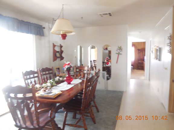 Extra large double wide mobile home built in 1976. Owner has really enjoyed this home and he hates to leave but his family wants him to move to be closer to them out of state. Home has a separate living room, family room and dining room. Very spacious home longer than most mobile homes 64 long. by 24 wide. Golden west. Home is located in a very nice mobile home park in Heritage park the only mobile home park in the Temecula area. space rent is approx. 700 per month plus water, trash and sewer runs about another 50 per month.. No property taxes just a small registration fee per year.. Very affodable to live here. One person has to be age 55 or better and the other person can be 40+. Home also has a view of the mountains!! call or email Sarah Medicke for appt. to see this home at 951-719-7565 or medicke@msn.com
