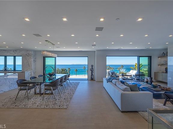 Seemingly endless stunning panoramic white water ocean views permeate this landmark. Brand new construction modern home with an open concept set on a one-of-a-kind promontory double-lot spanning over 11,000 sq ft of land with beach access, white water ocean views that cover the entire 185’ width of the estate, no neighbors on either side of it make it feel as though it is in a world unto itself perfect for family or entertainer’s use. Rare masterpiece features dramatic ocean views through all 7 state-of-the-art multi-sliding door openings. Visionaries transformed this unique setting into a world-class compound over the course of 4 years of construction and several years of planning before that. Transcendent composition spreads the home out across the vast piece of land resulting in beautiful ocean views like views from every room in the house and all of the outdoor spaces. Outdoor-living spaces with remarkable ocean views off all of the main rooms & bedrooms exemplify California lifestyle. Approximately 439 sq ft of decks and 570 sq ft of covered outdoor spaces including in the highly coveted loggia feature remarkable ocean views and speakers. Dazzling ocean views welcome you home through the grand glass entry pivot door and surround all 4 sides of the estate. Enjoy lovely white water ocean views throughout the open concept master suite with a deck conveniently located on the main level. Every detail of the home has been handcrafted using the finest finishes including: Gourmand kitchen with modern European style cabinets & Wolf & Sub Zero appliances, Lutron & Control 4 home automation, 3 surround sound theater locations & many more audio zones, marble & limestone slabs, 3 contemporary linear fireplaces including an 8’ fireplace in the great room with an 85” tv above it and a 6’ fireplace with 75” tv above it in the loggia, white oak cabinets & doors, floating tub, modern square speakers and recessed lighting, 4 climate zones.