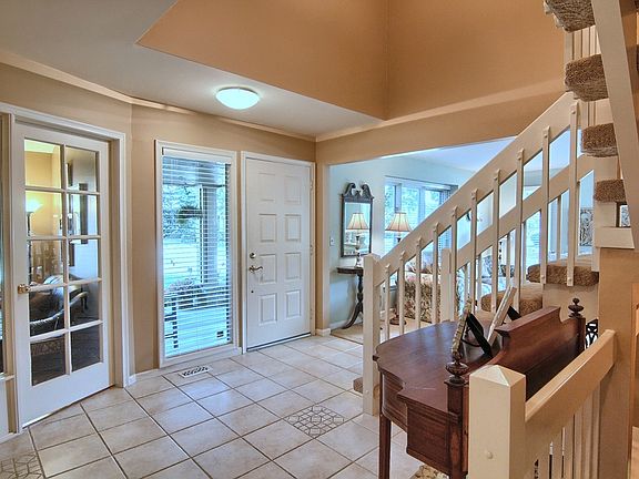 Light and airy soft contemporary! Custom porcelain flooring greets you at the 2 story foyer featuring a bright over sized sidelight and floating staircase. Updates include, furnace, AC, air cleaner, blinds, carpet, lighting ,all appliances with built in convection double oven, granite kitchen w/ maple cabinets, roof 2000, H2O tank, hardwood flooring in the private study with soaring ceiling & updated landscaping. An expansive family room affords a warm fireplace w/ custom brick surround and oversized skylight all flowing into the well appointed kitchen with generous counter space, premium maple cabinetry that includes glass front display uppers, and a spacious eating area . The owner’s suite is a relaxing retreat with large walk-in closet, dressing area & private bath, double sinks and separate stall shower. The finished lower level adds another dimension of living space for the entire family! Magnificent deck!