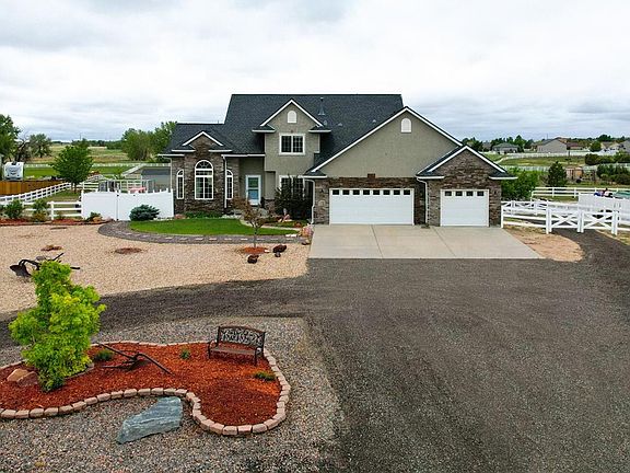 Custom home just east of Brighton in Box Elder North! Enjoy the quiet and the space to spread out on the nearly 4 acres: garden, entertain, bring the toys and the horses! In addition to the 3 car attached garage, the property includes a shed (currently used as a tack room), chicken coop and outbuilding! The 24x36 outbuilding is equipped with RV door, room for storage and 3 horse stalls! Thoughtful cross fencing allows for multiple animals. The home features a light and bright open floor plan as well as main level master suite and laundry! Options to do work or school from home in the dedicated office, loft or flex spaces - equipped with fiber optic high speed internet included in the HOA. Finished basement is a great hang out area! Relax and enjoy on the back deck, shaded from afternoon sun, looking out over property! Fully fenced and beautifully landscaped back yard with dog run, pergola and hot tub. Try your green thumb in the planting boxes. Great property! Must see!
