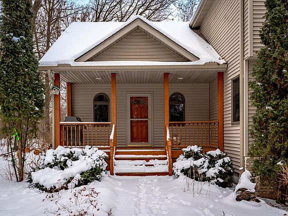 Beautifully designed 2003 Modified Two-Story featuring 6-panel solid oak doors ad quality Anderson windows throughout. The open-concept kitchen and dining area include a center island and a spacious walk-in pantry, perfect for entertaining. The inviting vaulted living room boasts a cozy gas fireplace, while the main floor also offers a versatile office or 5th bedroom. A well-appointed mudroom at the garage entrance provides built-in boot benches and lockers for added convenience. Upstairs, you'll find three generously sized bedrooms, a full bath, and a primary suite complete with a whirlpool tub, separate shower, and a walk-in closet. A perfect blend of comfort and style. The deck is an added bonus to enjoy wildlife & the seclusion of your wooded lot. New Roof in 2023.