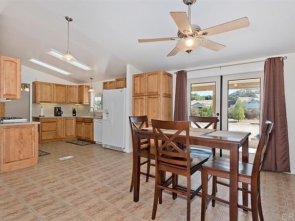 Almost 5 acres of flat fenced usable land with a 3 Bedroom plus Optional bedroom 2 baths manufactured home on a permanent foundation. 2 gated entries, horseshoe pits, fire pit, oversized detached 2 car garage, paved driveway, and a covered RV spot. Move-in ready home is immaculate! Newer Stucco covered porches front and back nothing is left to be desired with this home. Vaulted ceilings, new carpet, fresh paint, dual pane windows! The home has been recently remodeled with updated bathrooms and kitchen too