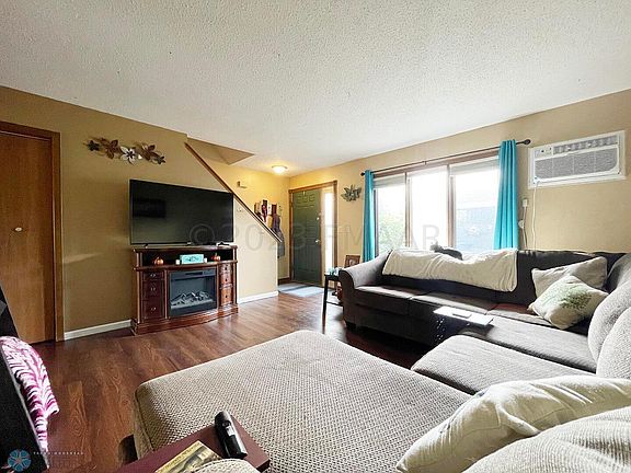 Affordable living with NO HOA! 3 bed/1.5 bath with custom white kitchen cabinets, dark laminate flooring throughout, wall AC Units on both levels, main floor half bath/laundry combo and fenced backyard with paver patio which makes for easy yard care! Walk out the back gate and right into a city park playground! Great location close to grocery stores, restaurants and more!