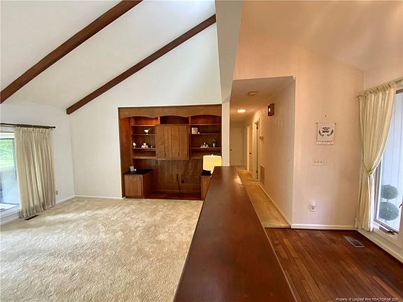Motivated Sellers ! This Waterfront 3 Bedroom 3 Full Bath has amazing golf course views & Lakeviews with its own Dock. Large ceilings with exposed beams and full of light from the enclosed carolina room. 2 Gas fireplaces keep this home cozy. Downstairs features a golf cart garage are and a finished den or office with its own fireplace. Large back deck to enjoy as well as a stone lower garden area to entertain. Low maintenance yard featuring mature wooded trees, and landscaping. Dont forget this is inside of the gated Carolina Trace community which boasts of 2 18 hole Golf Courses, Large lake for fishing, kayaking, & a great country club. Country Club offers fine dining, new state of the art health center, pro shop, ballroom, marina,Pool, & Tennis Courts.