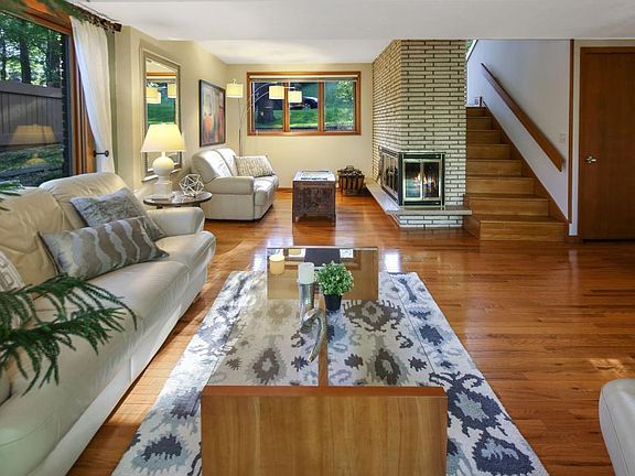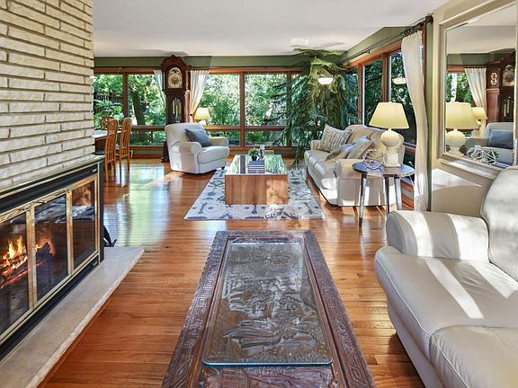 A Mid-Century Modern Gem! This split level home's main floor is on the lower level and has floor to ceiling windows so it's like you're living in a forest retreat as the back of the home is completely wooded and has a very private setting. The deck has a built in hot tub and there's a screened gazebo hidden down in the woods. 3 bedrooms, 2 bathrooms, gorgeous hardwood floors, beautiful woodwork throughout, this home has 4 fireplaces: in the living room, the family room, the master bedroom and sunroom. The family room is right off the open kitchen with a breakfast bar and is perfect for entertaining family and friends. The balcony off the master bedroom looks over tree tops, a delightful spot for morning coffee, and the cozy sunroom has beautiful natural views. The gas heated garage is an added bonus! In the perfect Golden Valley location, it's minutes from downtown Minneapolis, freeway access, and steps to walking trails with wildlife right out your door. This is a must see!