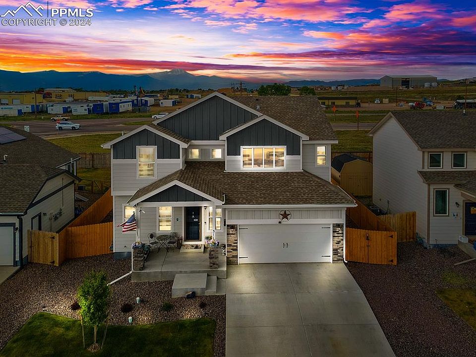 Welcome to this beautifully designed Two Story Home (with bonus basement) in a prime location teaming with an abundance of natural light! As you walk into the vaulted entryway with loft above, you are immediately greeted with luxury vinyl flooring throughout the entire main level. The heart of the home is the open Kitchen- a Chef's Dream, featuring a large island with ample seating, quartz countertops, 42” cabinets, and sleek stainless steel appliances. This kitchen is perfect for culinary adventures and entertaining, as it seamlessly connects to the dining and living areas in an open concept. The dining nook walks out to a covered patio in the fenced backyard overlooking the Rocky Mountain Front Range for those beautiful Colorado sunsets. A formal Study, Powder Bathroom, and 3 car tandem insulated garage complete the main level. Take the stairs (or the motorized chair lift) to the second level and step into your personal retreat in the expansive Primary Suite Bedroom. Featuring vaulted ceilings, oversized windows, dual closets, and sitting area this space naturally flows into the en suite 5 pc Master Bathroom complete with soaking tub. Three additional spacious bedrooms (two with walk-in closets), full bathroom, and upper-level laundry room complete the second floor. BONUS! Step downstairs into the “unfinished basement” with epoxy floors teaming with possibilities in this oversized 30’ room of possibilities (Rec Room, Gym, Play Room, Second Living Room). This level features multiple storage spaces or a possible space for a 5th bedroom framed out. Central Air, Radon System, fully landscaped front and back yards, sprinkler system, and even storage shed included! Minutes away from the Powers Corridor along with Peterson & Schriever Space Force Bases, Ft Carson, Shopping, Entertainment, & So Much More! You have to check this home out in person- don’t miss the opportunity to snatch this better-than-new home up!