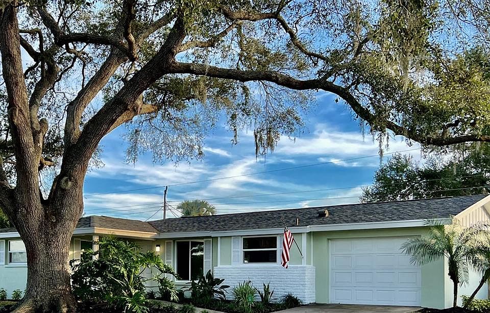 Mid century modern ranch with open floor plan and vaulted ceiling. Light and bright. Totally renovated from 2016 to present and move in ready. Hurricane impact windows and doors, Air Conditioner and duct replacement with 10 year warranty- 2020. Architectural shingle roof replacement- 2016, Total kitchen remodel with shaker style soft close doors/ stainless steel appliances/ upgraded granit countertop/ kitchen island/ pantry/ stainless steel sink and fixtures/ glass back splash,100% new flooring including 24” x 24” rectified porcelain tile throughout the main living area and bathrooms/ solid bamboo wood flooring in the bedrooms, remodeled bathrooms with new vanities/ hardware/ porcelain tile, overhead plumbing re-pipe, exterior re-stucco, new interior and exterior paint, paver rear patio with new sunshade, large fenced backyard, owner owned alarm system with low quarterly monitoring, and extra deep single car garage. Master bedroom with en suite bath and walk-in closet. Easy maintenance home having a low energy footprint with energy efficient hurricane windows and high efficiency air conditioning system. Dog friendly neighborhood. Conveniently located only minutes from shopping, restaurants, and the beach.