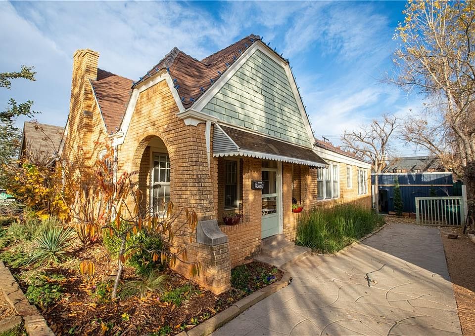 This 1930 Tudor Home welcomes you into a beautiful living room with barreled ceilings. Surrounding windows allow an abundance of natural light in. The living room, complete with an original Frankoma style, tiled fireplace takes you to the dining room and an open kitchen concept. From there you can head to either the backyard gardens, through the laundry room or to the hall where you will find both the bedrooms and bathroom. Hardwood floors have recently been restored and plumbing and electrical updates have been made in the last 7 years. Includes a rare, detached building (not counted sqft) in the back yard that can serve as a bonus room for a study, office, plant room or used as a garage etc. The outdoors include a stone + sustainable plant xeriscape that requires no lawn mower and zero-chemicals are used here. The stone seating area is in the shape of OKLAHOMA & featured in 405 Magazine. A true indoor/outdoor home near Paseo, Uptown 23rd, Western Ave+5 city parks. *Owner/Licensee *