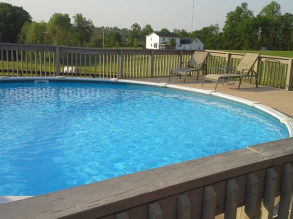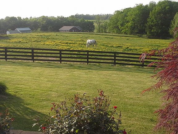 Beautiful brick ranch, full finished walkout basement (3,000 sq. ft. total), 2 patios, 24' above ground pool with deck. Living room has vaulted ceiling and large built-in bookshelves and built-in surround sound speakers (surround sound is also wired for garage and upper patio). Kitchen has new Bosch dishwasher and GE cooktop. New flooring (vinyl planking in living room, hallway and both ground level bathrooms, tile in kitchen). Master bedroom has trey ceiling, master bath has jetted tub. Central heating/cooling system is 2 years old. There is a like-new 8x12 storage building and a nice garden spot with established strawberry patch and asparagus patch. Home is surrounded by beautiful landscaping: daylillies, irises, roses, and a perennial garden. Approx. 3 1/2 acres is fenced with board and woven wire fence. There is a 24'x44' 4 stall barn with tack room and attached chicken lot and built-in coop. An additional 12'x20' small pen with small shed is on the property. Driveway is paved. Additional property info: http://www.forsalebyowner.com/listing/4-bed-Single-Family-home-for-sale-by-owner-3114-Old-Bloomfield-Road-40004/24030956?provider_id=28079
