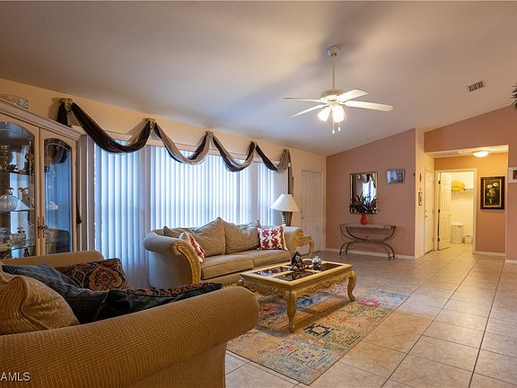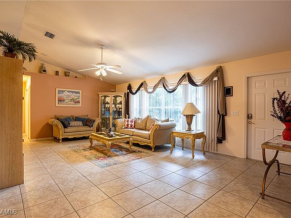 This meticulously maintained 3-bedroom, 2-bath residence is situated in a sought-after neighborhood just off Country Club and south of Veterans, offering unparalleled convenience to shopping, dining, entertainment, and an effortless commute to Fort Myers. The home features tiled flooring throughout, accentuated by lofty ceilings in the living, dining, and kitchen areas — an ideal setting for hosting guests. The spacious kitchen boasts ample counter space, cabinets, and stainless steel appliances, accommodating multiple chefs with ease. Step outside to the expansive screened lanai with epoxy flooring, providing a serene space to relax while enjoying the view of the fenced yard, which offers ample space for a potential pool addition. Recent updates include a roof replacement in 2022 and an air conditioning unit installed in 2018. To top it off, the property comes fully furnished, presenting a turnkey opportunity for the new homeowner. Assessments paid!