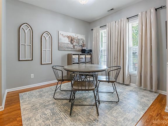 This 2 story, 3 bedroom, 2.5 bath gem is nestled in the coveted Fort Mill School district. The kitchen showcases stainless steel appliances and beautiful granite countertops complimented by wood floors on the main level. The privacy fenced backyard includes a patio and a fire pit for outside fun or relax inside by the cozy fireplace on chilly days! The community provides a refreshing pool and a playground, perfect for leisure and recreation. This home offers a comfortable and a stylish living space. Welcome home!