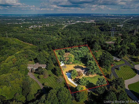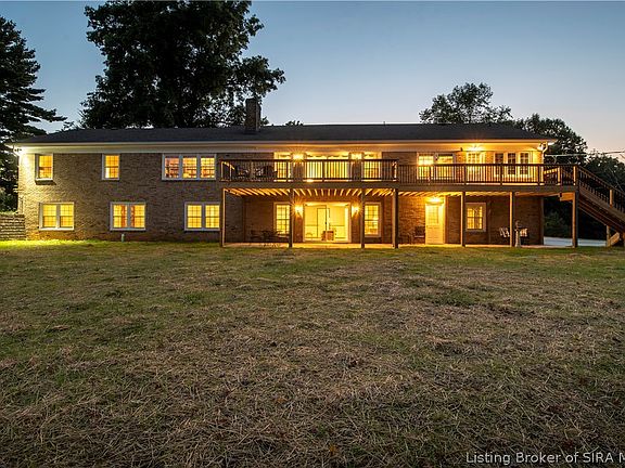 Thunderstruck! Timeless beauty on 3.19 acres in Floyds Knobs with a skyline view overlooking Southern Indiana into Louisville. Schedule a twilight tour and enjoy the magic of a property that features the twinkling of lights from the city that mirrors the shine of the stars above. The discerning viewer will appreciate the quality throughout and feel the nostalgia for an era where homes were designed to endure. Large spacious rooms & steel beam construction allow for future modification as desired. There is an octagonal rotunda with elements of Greece and Oxford which has served as a writing room in the past but allows for versatile use moving forward. This 5 bedroom 4 1/2 bath home features approx 5500 sq ft with a design that allows for hobbies & a separate mother-in-law quarters if needed. The lower level has an outdoor entrance, laundry, family room, an area plumbed for a kitchenette or bar, and three spacious bedrooms including a master suite. The main level also includes a master suite, secondary bedroom, laundry, tremendously sized kitchen, living & dining rooms to entertain, a beautiful library with built ins, an office off of the kitchen as well as a potting room for the avid gardener. Recent updates include new septic system with the lines ran allowing for a future pool, concrete driveway, oversized composite deck running the width of the home and two HVAC units. Open house this Sunday from 2-4.