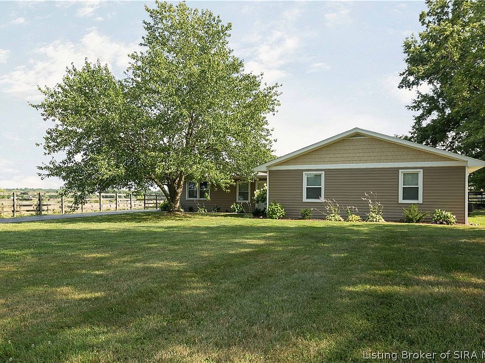 Location, location!! This 3 bed, 1.5 bath home with 2.83 Acres just 1/4 mile off of Grant Line Road is perfect for a mini farm with black board fencing area property for your farm animals. This features a large kitchen with breakfast bar and eat-in-kitchen, large utility room, blacktop driveway, a 56 x 23 pole barn with electricity, a 20 x 20 storage shed with a sliding door, new carpet, freshly painted, all new windows, updated electric throughout home, new HVAC system and water heater. Mature trees with a beautiful panoramic view of Floyds Knobs and wonderful neighbors. Home comes with a 1 yr Home Warranty for your piece of mind. Call today for a showing. Buyer to verify schools, and Sq ft and room dimensions are approximate.