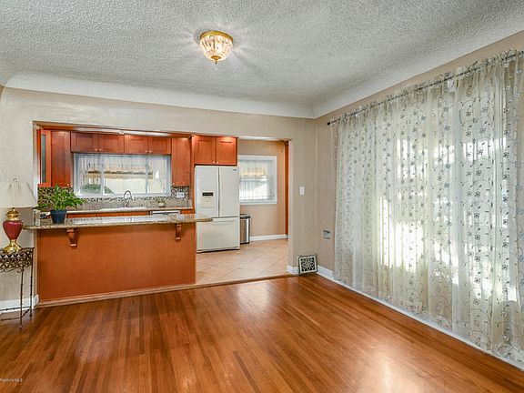 This charming Spanish bungalow, well cared for by the same family for over 40 years, is in the wonderful neighborhood adjacent to Arceo Park, El Monte High School, and various community centers. Within the last few years, the home has been updated with a remodeled kitchen, master bathroom and double-paned windows. From the welcoming front porch, one is drawn into a spacious living room, complete with coved ceilings and hardwood floors, opening up to the beautiful dining room and kitchen, recently remodeled with well-designed cabinetry, granite countertops, recessed lighting, and stainless steel appliances. The master bedroom has new wood flooring and a remodeled bathroom with a large soaking tub and spacious shower with a built-in seat. Two other bedrooms provide ample closet space and share a hallway bathroom, equipped with laundry hookups and built-in linen cabinet, which is adjacent to a wonderful step-down family room with vaulted ceiling, new wood flooring, raised brick hearth and wood-burning stove, opening out onto a large, covered patio and backyard. A unique feature of this home is the oversized garage with built-in shelving, quarter bathroom, and attached storage room behind that was previously used as a workshop.