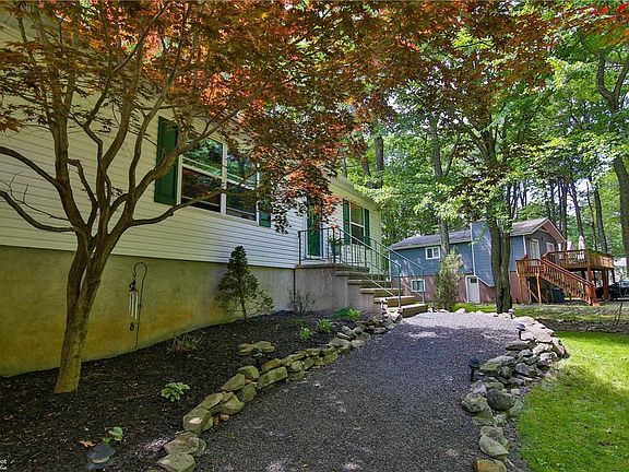 Short term rentals permitted This expanded raised Ranch is available for the 1st time. The original owners took great pride in maintaining & improving the home during their 30yr ownership. A beautiful sunroom w/ tray ceiling was added as well as a 2nd master bedroom suite complete w/a jetted garden tub. There are h/w floors in almost every room on the 1st floor .The LL has been finished w/much attention to detail & is perfect for entertaining large groups. The kitchen has been enhanced w/granite countertops, SS appliances and is open to the DR and Sunroom. Outdoors enjoy a 15x18 deck overlooking the wooded lot. You'll enjoy the many amenities this community has to offer including 2 lakes, club house & pool. close to commuting roads & all the Pocono's area attractions, outlets, waterparks, golf courses, skiing, hiking, fishing, and restaurants & check out the low taxes! The size of the home makes for a great primary res, or investment/vacation home. Big enough for the extended family.