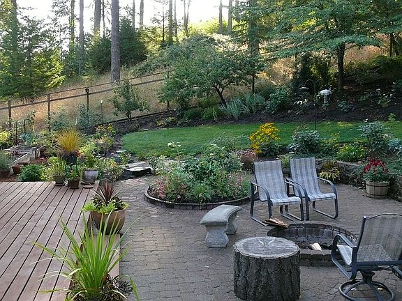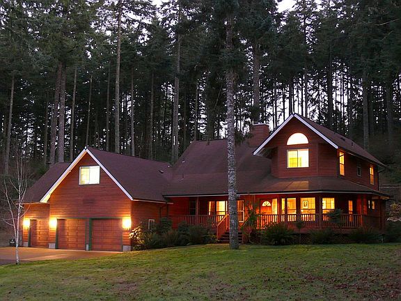 Cedar house with extensive garden, restored oak meadow, small orchard, multiple raised beds, and a greenhouse. Spacious studio/exercise room over 3 garage bays.