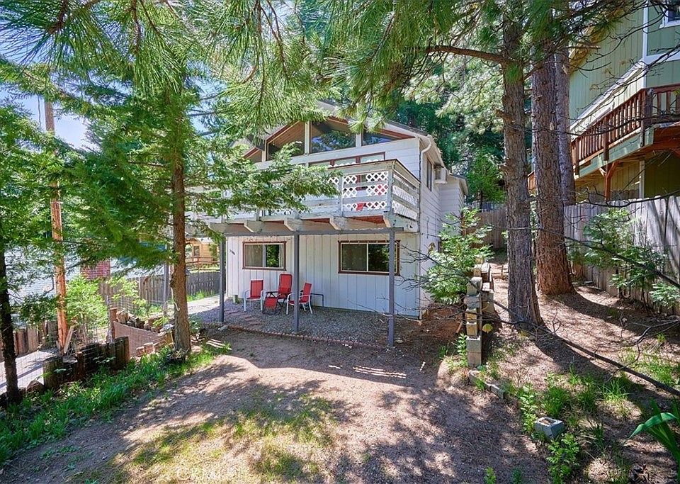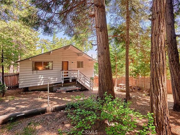 Charming 3br 2 bath home with vaulted wood beam ceilings, dramatic floor to ceiling glass walls, wood burning stone fireplace, and large, fabulous viewing deck, peacefully tucked between the majestic pines. The crisp white galley kitchen opens to the great room and boasts plenty of prep surface. There is a generous amount of off street parking, large front and back yard (fenced) and a convenient storage shed! Main floor has a spacious bedroom and full bath. The lower level has private entrance, two bedrooms, a full bath, covered porch, and downstairs storage room with laundry hook ups. the quaint mountain community of Running Springs is just minutes from Big Bear skiing, Lake Arrowhead boating, and plenty of local shops and dining. Plenty of activities to enjoy year round, be it hiking, mountain biking, sledding or feeding the blue jays, this is a great place to call home!!