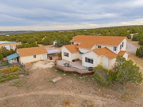 Inside and out—it has it all. Six spacious bedrooms and three baths offer room for family, guests, or creative spaces like a home office or studio. A 14 month Home Warranty and Pool Table are included. Vaulted ceilings bring light and air throughout, opening to a massive back deck with sweeping mountain views that change with the seasons. A 3,000-sq-ft shop, two-car garage, and one-car carport provide space for projects, hobbies, or livestock. Private well with filtration system feeds a 2,000-gallon cistern for dependable, clean water. Set on 40 acres in the sought-after Red Creek Ranch, this property includes a spring-fed pond, seasonal stream, garden beds, chicken coop, and pasture for livestock. Just minutes from Beulah's small-town charm and Lake Pueblo State Park's 60 miles of shoreline, you'll enjoy rural tranquility with easy access to amenities. Wildlife wanders freely - deer, elk, and songbirds remind you what true Colorado living feels like. Secure, secluded, yet easily reached year-round, this estate is more than a home; it's a canvas for your dreams. Grow, explore, build, or simply be. Your vision, your legacy—start it here!