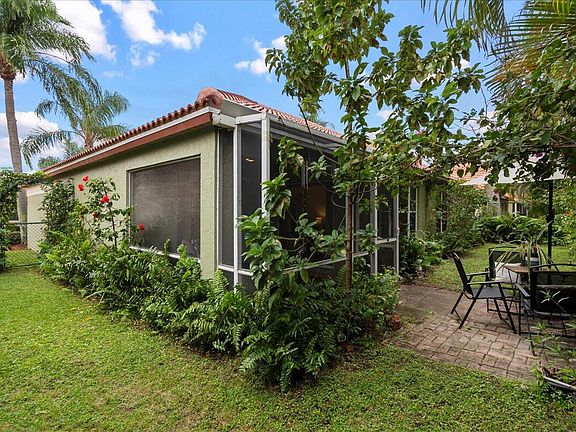 Welcome to your new slice of paradise in the gated community of Woodbine! This beautiful single-family home offers you a desirable split and open floor plan with high vaulted ceilings, just under 1500 sq. ft of living space and a NEW ROOF installed at the end 2023! The kitchen has been remodeled with custom white soft-close cabinetry, granite counter tops, tile backsplash and LVT flooring. With 3 bedrooms (3rd set up as den/office) and 2 full bathrooms, this home offers an unbeatable opportunity! The primary bathroom features upgraded wood plank tile flooring and dual vanity sinks. The spacious 2 car garage also has custom cabinetry with shelving for ample well-organized storage. Beyond the interior, the backyard offers you a tranquil oasis where you can unwind and relax in your covered screened in patio. The backyard itself has been fenced in and offers an array of landscaping including avocado, key lime, tangerine, and grapefruit trees. The community HOA fee covers Cable, Lawn Maintenance, Irrigation, 3 community swimming pools, fitness center, security patrol, 3 Tennis Courts, 2 Racquetball Courts, Sand Volleyball Court, Sports Field w/ Soccer Goals, and a Tot Lot. With its ideal location and a host of recent upgrades, this home presents an incredible offering to enjoy a comfortable and low maintenance lifestyle at its finest. Don't miss your chance to make this property your own!!!