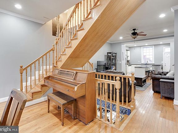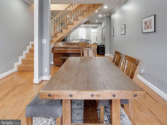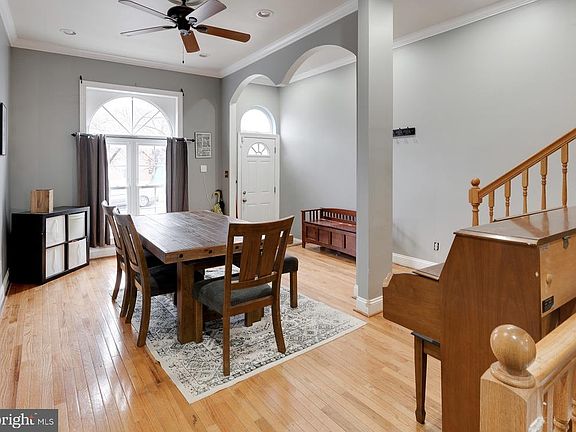 This spacious three-bedroom, three-bathroom row home boasts high ceilings, remodeled kitchen with granite countertops, fully finished basement, wood flooring, and much more. A modern chandelier hangs above the staircase, and recessed lighting appears throughout the property. The second-level master bedroom has a private full bathroom. In the basement, there is a full bathroom and private entrance. Above the patio is a covered porch connected by stairs to the rear bedroom door, doubling as a private entryway. Local shops and restaurants are within a short distance, and the nearby community building is preparing for a substantial renovation. See this hidden gem before it's gone!