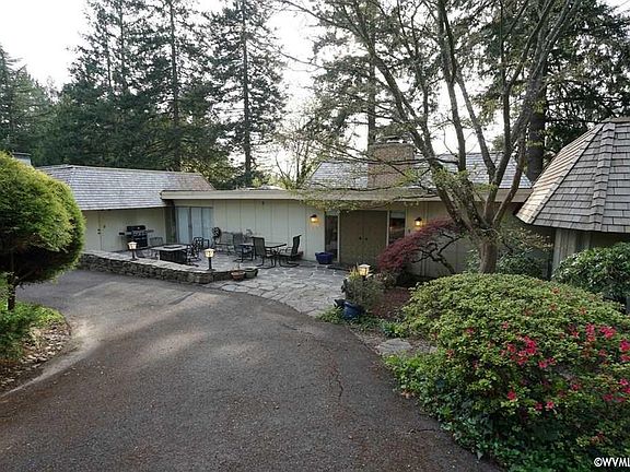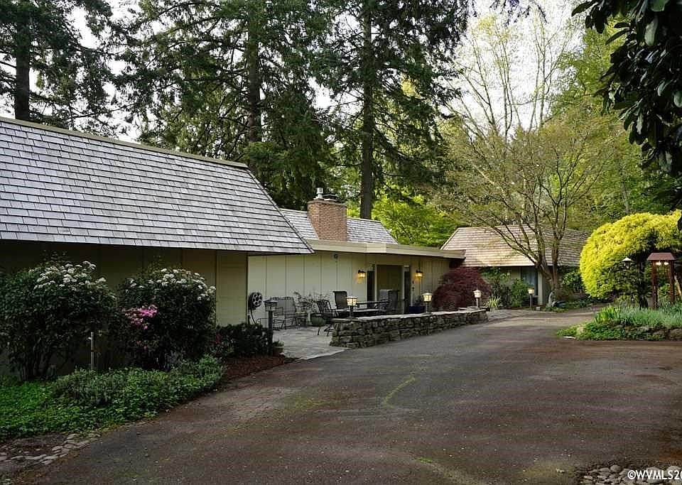 5 bedroom, 4 bath, mid-century classic on secluded property. 4 tax lots = 2.5 acres, 10 min to downtown. Full remodel in 2020. Massive kitchen, formal dining rm. 2 gas fireplaces, living & family rm, office, guest room w/ bath, skylights, floor to ceiling windows, home gym, laundry/mud rm, much storage, 2 car gar, 2 composite decks & elegant entry courtyard, private hedge lined loop driveway.