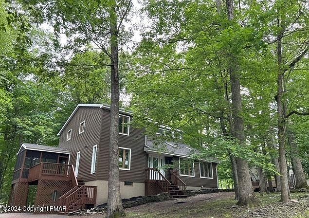 Located in a amenity filled community, in walking distance to the security office and a short walk to Amenities ( outdoor pool, basketball, playground, snack/supply store and tennis courts ) Accessible to major roads and Rt 80 / NJ Border. Offering Vaulted ceilings, Large EI Kitchen, freshly painted, new LVP flooring, new ss appliances, new light fixtures. Living-room stone fireplace offers a cozy place to watch movies, Open 2nd Fl Loft, formal dining room, Tiled flooring in bathrooms, New roof, New vinyl siding, Screened in porch, freshly stained deck area, off street parking,1 attached side entry garage and unfinished basement.