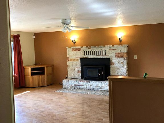 Excellent location out of cold N.W. winds and no flooding.Country living close to town. Spacious rooms, separate guest area. Double garage plus 29X40 carport area. Separate 16X30 walk-in cooler, cutting room and hanging area for the hunter in the family. Floor in attic for storage. New hot water heater. Water $70 for 2 months and fee for extra usage. Built-in vacuum system for garage. (Needs new hose.) Built-in safe in house. Occupancy after 10/15/19. Alarm system is owned. Small tool shed, covered area for wood storage.