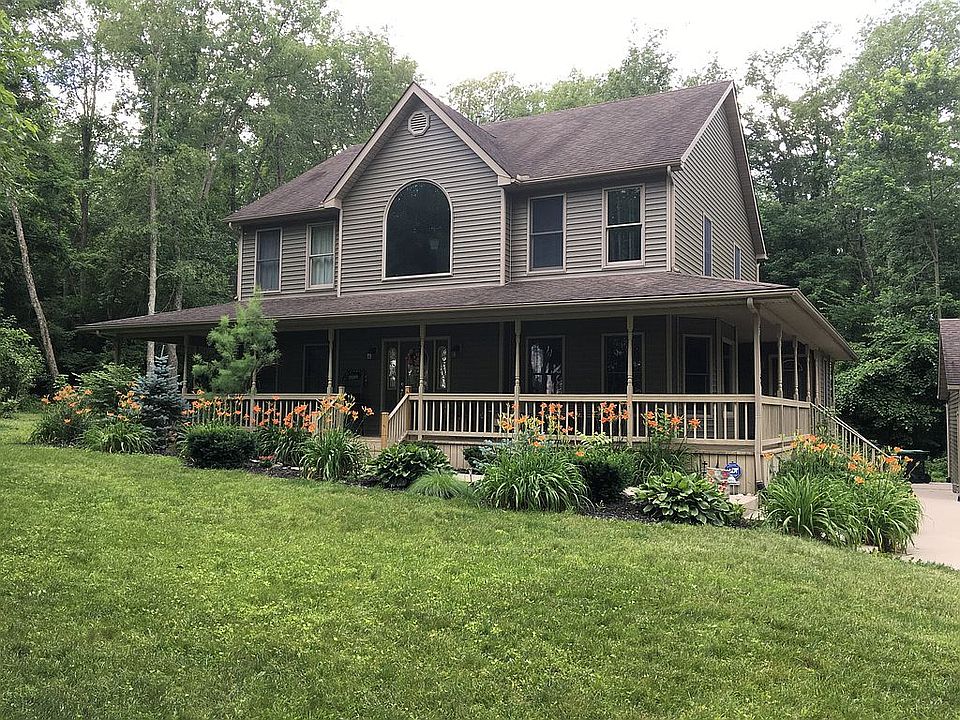 Beautiful country home in a wooded area just over 2 acres with a ravine creek 2300 square feet. Master bedroom downstairs, three bedrooms upstairs with a movie room. All new flooring painting and wood trim throughout the whole house with a fireplace wraparound porch and three car garage. This is for sale by owner no co-ops and Preapproval letter needed to take a tour of the home. Please call Natalie at 1-614-329-4917