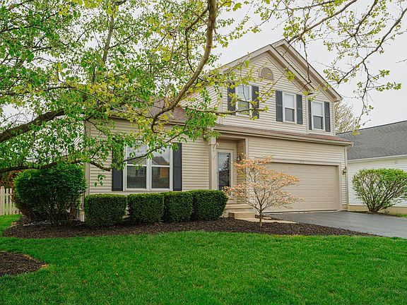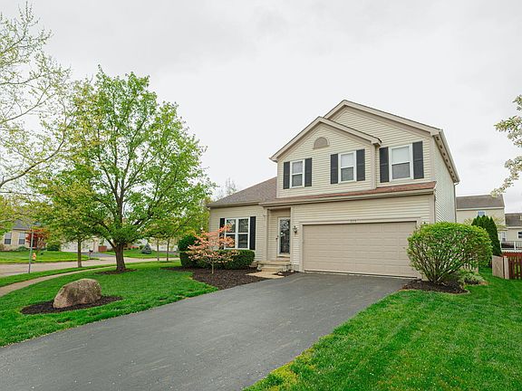 Welcome to luxury living in Hilliard Schools with Columbus taxes! This stunning home offers easy access to Downtown, I-70, I-270, Old Hilliard and Bridge Park. Step into the grand two-story great room with high ceilings and a stacked stone fireplace. Entertain in style with the spacious dining room and a huge kitchen featuring an island and eat-in area. Retreat to three generous bedrooms and two and a half baths, including a beautifully updated primary bath. The finished basement boasts a bar area and ample storage. Outside, enjoy your composite deck overlooking the large corner lot with meticulous landscaping. Additional features include convenient first-floor laundry, a new insulated garage door, newer appliances, fresh carpet, and a new furnace. Don't miss this one!
