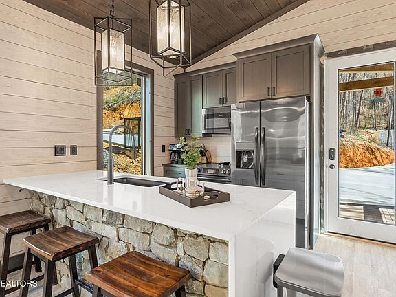 A Visionary Investors' Paradise! This home comes fully furnished with a barrel hot tub, ready to be a hot overnight rental. It comes with access to a hiking trail that will bring you to a beautiful 75 ft. cascading waterfall. Don't miss the opportunity to witness the magnificence of this property first-hand. Schedule your visit today and embark on a remarkable journey of endless possibilities. HOA includes community well, road maintenance, hiking trail and waterfall upkeep.