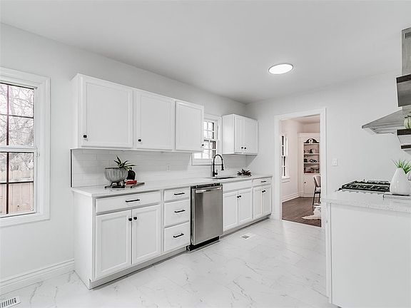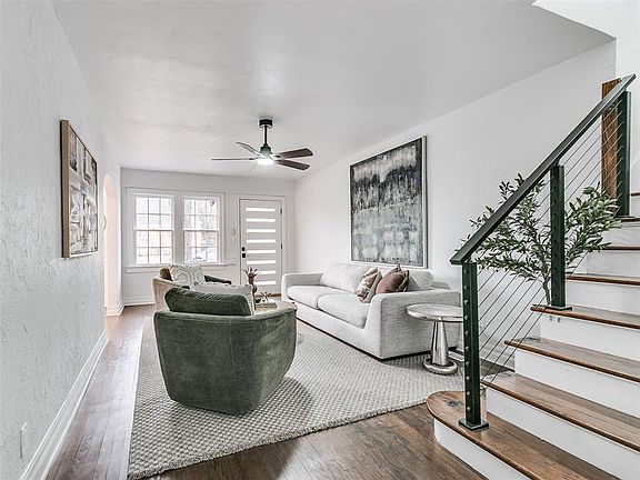 Refreshed 4 bed, 2 bath 1930's stone 2-story in the Denniston Park Addition. Appreciate the arched doorway to the dining room, built in book cases in dining & upstairs and original wood flooring. The kitchen has new subway tile backsplash, beadboard, appliances, stainless range hood, cabinets, faucet/sink and knobs/pulls. The washer/dryer hookups are tucked away in the laundry closet. There is a spacious mud room off the kitchen that leads to the back yard. The primary bed and en suite bath have new flooring, tile, walk in shower, vanity, lights and mirrors. Upstairs you will find 3 bedrooms and a second bath. One of the HVAC units have been replaced. Just down the street from the Denniston Park and east of I-44/north of 23rd St. Only 15mins from Will Rogers International Airport and 8 mins from downtown OKC.