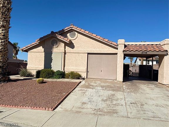This single family home is a rare find in Laughlin! This cute home has great curb appeal. Features a nice sized living room. The eat-in kitchen has tile flooring, stainless steel appliances and Corian counters. The primary bedroom is separate and has a ceiling fan and walk in closet. The secondary bedrooms have mirrored closet doors. There is an attached single car garage and a covered carport. The big backyard has a covered patio. Minutes from casinos, restaurants, shopping and the beautiful Colorado River. Prefect for a getaway home where you can enjoy water and desert sports and nearby Oatman, the Grand Canyon and historic Route 66. No HOA!