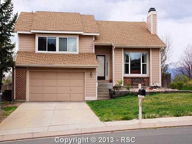 Stylish D20 Trilevel. Beautiful Pikes Peak views from rear of home. Stunning formal living room with fireplace, and soaring ceiling opens to upper level. Mbr has cedar floors in closet. Oversized garage with loads of storage and work area. Lower level family room is bright and sunny. New owners can complete back landscaping to their personal tastes.
