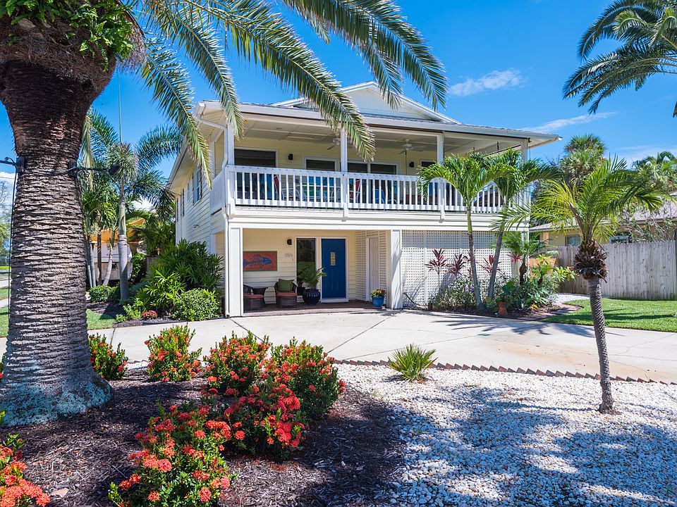 Welcome Home to your Beach House! This Charming, Elevated 2 Story House Sits on a Large Corner Lot across from Lazzarillo Park with a Perfect...I mean Perfect View of the Park & World Famous Don Cesar Hotel!! This Beautifully Renovated Key West Style Home is Well Designed with 3 Bedrooms, 2 Baths, and 3+car garage. First Level features garage area, 195 SF of Bonus Space, and... your Friends will be Jealous of your "Real Deal" Air Conditioned Workshop! The 2nd Floor Main Living Area is an Open Floor Plan with Hickory Wood Flooring, Vaulted Ceilings, Large Picture Windows & Glass Sliders leading out to the 30 Ft Covered Verandah w/ Gorgeous Views! Kitchen features Large Center Island, Wood Cabinets, Granite Counters & Coastal White Appliances. True Master Bedroom has two closets & en-suite bathroom w/ Granite-top Vanity w/dual sinks, & Walk-in Shower. Two addtl bedrooms on this floor & a 2nd bath w/ granite counters. Convenient Inside Laundry. Great Curb Appeal! Circular Drive w/ Mature Landscaping & pavered entry. Plenty of room for RV/Boat Parking! Tropical Backyard has Lush Landscaping, Pavered patios, Hot tub, & more! The Walk-ability of This Neighborhood has to be 100%! Walk to Don Cesar, Park, Tennis Courts, and Beach. Ride your golf cart to ride to Pass-a-Grille to enjoy restaurants and Shopping! Take a sunset walk on the Bayway Bridge & enjoy Gorgeous Views of the Area! Public Boat Ramp! Super close to Interstate, Downtown St Pete and Tampa! Don't Miss this Outstanding Opportunity!!