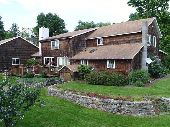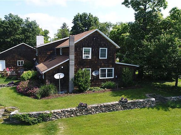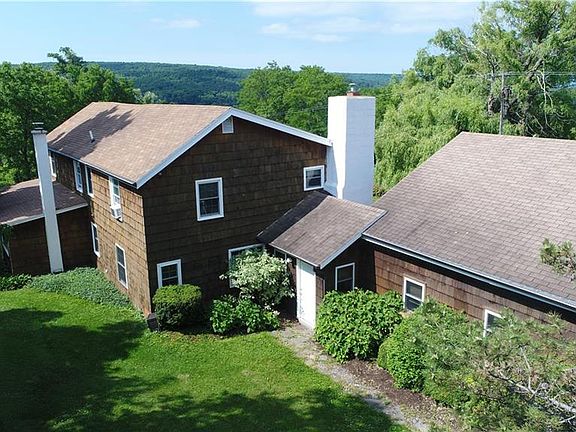 New Listing! Rolling hillside, open pasture, and mature hardwoods make up the private 53 acres that surround this 4 bedroom 2 1/2 bath country estate, nestled in the heart of the Finger Lakes Region. Charm & character are apparent in each room as the floorplan unfolds before you.Curl up with a good book in front of the fire and enjoy the peacefulness of the sunlit Great Room. In warmer months open up the French doors that leads out to the back deck and enjoy the private scenic views. Hosting a large gathering will be a breeze in the dining /family room combo. The kitchen boasts Custom Cherry cabinets & heated floor! First Floor bedrm & half bath is an added bonus! This home has been lovingly cared for with many updates including Windows, Propane Boiler, and Septic tank, just to name a few.