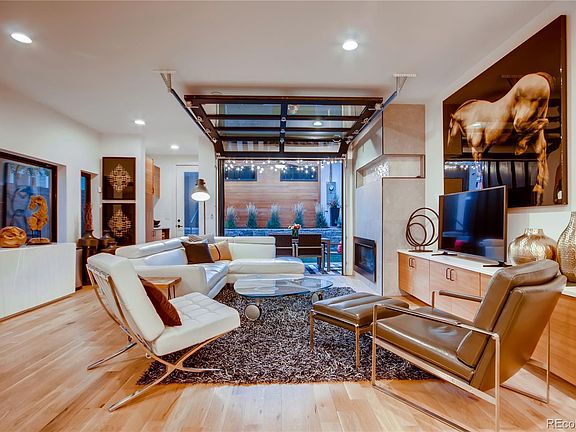 BEST LOCATION! An industrial modern masterpiece located in the heart of LoHi with a dramatic soaring entry that highlights a prestigious chandelier. This home impeccably combines industrial and modern designs with exposed I-beams, butcher-block staircases, maple hardwood floors throughout and a spectacular fully-retractable garage-door wall which allows the living room to become one with the backyard. From the rooftop deck enjoy amazing city views! The Chef's kitchen features a waterfall quartz island,European inspired cabinetry,commercial style gas range and hood, and individual refrigerator and freezer. The master suite getaway includes a 5 piece bath with oversized walk-in shower, soaker tub and walk-in closet. Finished basement hosts a walk-in wine cellar room. No detail has been overlooked in this highly desirable location: the best walkability in Denver as the heart of LoHi is at your doorstep,and Union Station and Downtown a quick walk away.