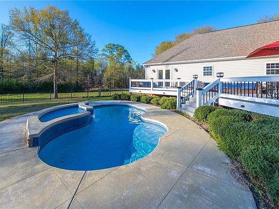 This is a Gorgeous home that sits on 5 acres of land. This home has everything you could imagine wanting in a home. The home is over 3500 square feet with an Enormous Master Wing. The Master Wing has its own fireplace, Huge master bath, and Custom Master Closet.The home has 2 Bonus Rooms that can be converted into 2 extra bedrooms or whatever suit your needs. The Great room is spacious with Vaulted ceilings and a beautiful stone fireplace. There is nice custom deck that leads to an eye catching in ground pool in the backyard.