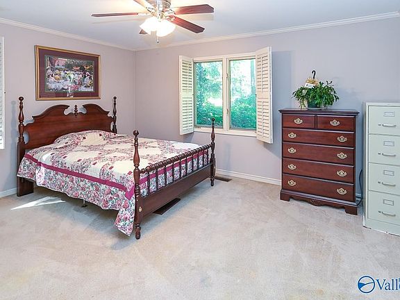 BURNINGTREE MOUNTAIN, lovely wooded natural setting. BRAND NEW ROOF OCT 2022. Large family room with vaulted ceiling, gas fireplace, wet bar and access to spacious outdoor deck space for entertaining and relaxing. Spacious Formal Dining room leads to small screened porch, perfect coffee and wine spot! Eat-in Kitchen with abundance of cabinetry! Laundry Room. 2 room Master suite w/deck access. Double Garage w/3 storage closets, and a detached Storage Bldg/Workshop. Moments from Hwy 67 and I-65 for EASY COMMUTE!