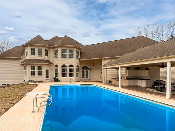 Welcome to your private retreat! This beautiful custom-built executive brick home offers 4 bedrooms, 3 full baths, 2 half bathrooms and an array of high-end features designed for comfort and luxury. Step into this stunning kitchen, a perfect blend of style and functionality. Featuring sleek quartz countertops, custom cabinetry, and top of the line appliances complemented by a formal dining room perfect for family and entertaining. The main floor master suite provides a private oasis, while the two-story foyer makes a grand first impression. Upstairs, you'll find three additional bedrooms, including one with a private en-suite bath, while the other two share a bathroom between the two bedrooms. A spacious family room on the upper level provides the perfect gathering space for relaxation or entertaining. The full basement is already plumbed and ready for your personal touch. Step outside to your own backyard paradise, featuring an in-ground pool, outdoor kitchen, fenced backyard and plenty of space to unwind. With two brand-new geothermal units for energy efficiency and Clearwave fiber internet for high-speed connectivity, this home blends modern convenience with luxury living. All of this is nestled on 10 scenic acres, offering the perfect combination of privacy and accessibility. Don't miss this rare opportunity-schedule your showing today.