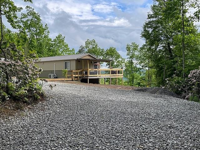 AVAILABLE This meticulously maintained site built home on 5 acres has spectacular views, open spaces and even a waterfall in the woods! The main home is adorable with a huge deck overlooking back yard and amazing mountain views. The home features 2 mini split units, pocket doors, solid cabinets, beautiful quartz countertops and subway tile. The master bedroom is large and can easily accommodate a king size bed without issue. Perfectly maintained and quality built w spray foam insulation. There is a 382 sq ft building for a small studio/office/ or additional living quarters, which features full size refrigerator, live edge countertops, separate 40 gallon water heater, vinyl flooring, and spray foam insulation at floor joists. Additionally, there are two other out buildings. One is a 12x20 tool or ATV shed , the other is a 12x16 storage building. Both have electricity for all your toys and or handy projects. Your very own private oasis in the woods.