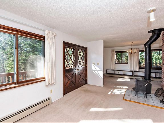 A True Gem, Serene 2.5 Acres, Chalet-Style Home, Southern Exposure filtered by mature pines for passive solar heat without temperature extremes, two attached Greenhouse rooms, Mountain Views, end of the county maintained road convenience, One Owner, Solid Construction, 3 bedrooms on upper level and one on the main, lots of closets and storage areas inside and out, multiple decks surround the home, wildfire forest mitigation recently completed, protective covenants and easements secure privacy and views, cozy natural gas hot water baseboard heat plus wood and gas stove units, workshop with exterior access, close to schools and parkland trails, Gentle Land with towering trees, rocks, wildflowers, and mountain grasses, pre-inspection available and septic use permit already issued, quick closing and possession.