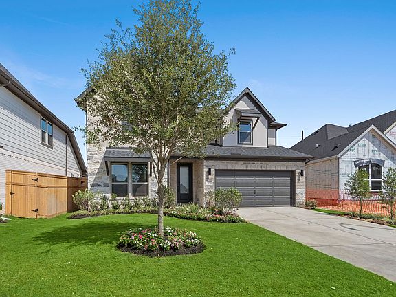 NEWMARK HOMES has done it again with another masterpiece in CROSS CREEK WEST. The new construction open concept 50' KOBLENZ has 4 bedrooms w/ 2 down & 3 baths & features a brick & stone front elevation w/ black window frames. This cutting edge modern 2 story has a cozy alcove flex room right off the kitchen. The 2 story family room has a wall of windows overlooking the calming views of the backyard oasis. Elegant hardwoods are sprawled out in the main living areas. The open island kitchen has 42" cabinetry, pristine porcelain countertops with immaculate detail & built in appliances. The main suite features hand selected tile to go along with the mud-set shower & garden tub. The rounded open railing staircase leads up to the game room & secluded media. Enjoy the valuable energy savings standards that include spray foam insulation, a tankless hot water heater, 16 seer hvac system. a full sprinkler system & full gutters are included.