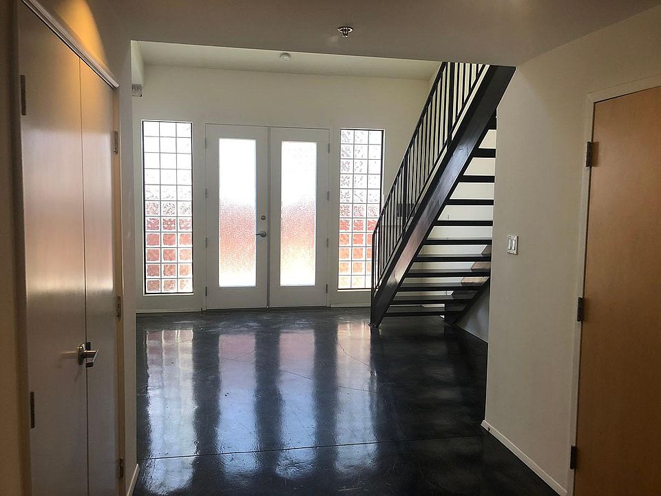 Tri-level loft with open floor plan and sunny little patio. Main level has open kitchen with stainless appliances, living room, half bath and washer/dryer. Second level loft area has plenty of space for a bedroom as well as a full bathroom. Third level could be a nice office or bedroom. 1 car parking space in secure lot. Close to freeways and other amenities.