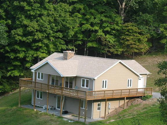 LONGVIEW: A charming home with 2.1 acres and with an attractive layout: a great room with field stone fireplace, open plan kitchen, master suite with large walk-in closet and two bedrooms and bath all on one floor. Downstairs is fully carpeted, 3/4 bath with bedroom, office, sliding glass doors to sloping lawn. Easy access to main road.