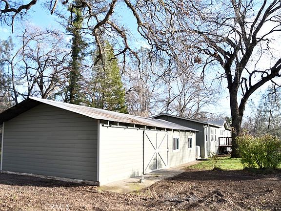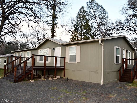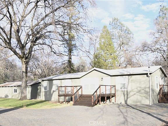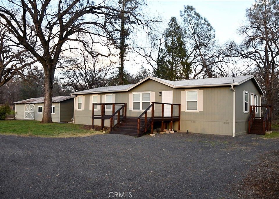 Amazing fully fenced 1 acre property in Butte Valley with 2006 updated Manufactured home awaits your family, animals and toys. The home boasts a split floor plan with second bedroom and bathroom on one end of home and a large primary suite with on the other end. The primary suite has room for an office, sitting area or exercise area. The primary bathroom has Quartzite stone counters (both bathrooms feature), double sinks, soaking tub and separate walk in shower. The home has open floor plan, with vaulted ceilings, ceiling fans throughout, newer luxury vinyl tile, newer blinds, Nest HVAC control, and large dining room off living room. The kitchen has eating breakfast bar, island and newer appliances including refrigerator, propane 5 burner cooktop and over, dishwasher, microwave and walk in pantry. The home comes also has large indoor laundry room with washer and dryer included that leads to back porch. All doors have security screen doors, the home has raingutters with the leaf guard protection screens, a large beautiful front redwood deck for you to be able to enjoy gorgeous sunsets and your spacious yard. The worksop/garage offers plenty of storage and space for projects. There is are two wells on the porperty with Culligan water softning systems and filters. The home has owned solar, fruit trees including incredible pomagranite tree. The home has propane and backs up to a natural wooded area. Bring your 4H projects, enjoy being in the Durham Unifed School District.