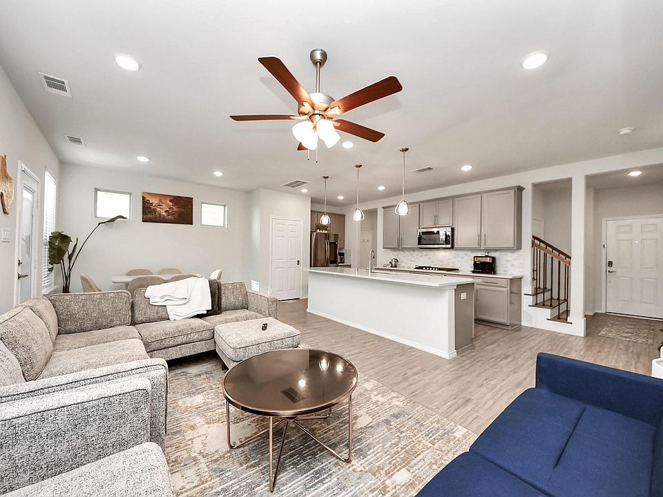 Welcome to this stunning FURNISHED 3-bedroom, 2.5-bath home in the highly desirable gated Briarmont community, where residents enjoy resort-style amenities including a sparkling pool, outdoor kitchen, guest parking, and beautifully maintained landscaping. Built in 2021, this 2-story home offers an open-concept design with a bright and spacious living area, modern island kitchen with quartz countertops, stainless steel appliances, and plenty of cabinet space. Upstairs features a luxurious primary suite with double sinks, a walk-in shower, and a generous closet, plus two secondary bedrooms, a full bath, and laundry. Energy-efficient construction, an attached garage, and controlled access provide comfort and peace of mind. Conveniently located minutes from the Galleria, Downtown Houston, and major highways, this home combines modern living with easy access to the best of Houston. Lease this stylish move-in option, or ASK ME ABOUT unfurnished option to add your own personal touches.