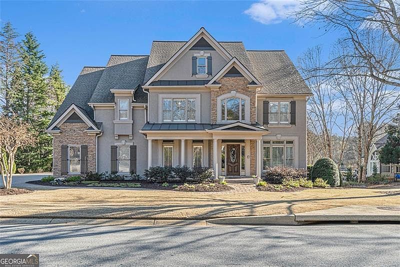 Oh, goodness, there's so much to share! Step into this stunning European-style home boasting durable four-sided hard coat stucco. Inside, polished hardwood floors greet you in the grand two-story foyer, leading to elegant formal living and dining rooms perfect for entertaining. The expansive two-story family room features a striking stack stone fireplace and floods of natural light. The kitchen is a dream, equipped with a gas cooktop, double ovens, and ample prep space. Upstairs, the oversized master suite includes a cozy sitting area, while the updated bath feels like a luxurious spa retreat with its spacious shower, indulgent soaking tub, double vanities, heated floors, and a private water closet. Generously sized secondary bedrooms offer large closets, with two bedrooms connected by a shared bath and separate sinks, while another bedroom enjoys its own ensuite bath. The terrace level is equally impressive, boasting a work area, a spacious living room that could easily be a bedroom, an additional recreation room, and an abundance of unfinished storage space, catering to various needs. Outside, revel in the delightful deck, meticulously landscaped backyard with front and back irrigation systems, and the convenience of a three-car side entry garage. Plus, it's situated in the coveted Pope High School district! This exceptional home is a must-see; it won't stay on the market for long!