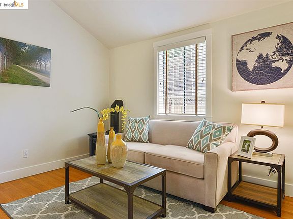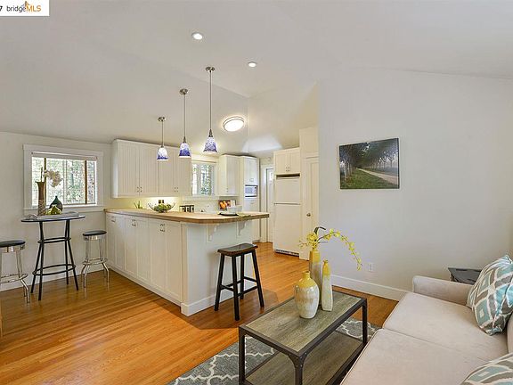 Adorable 1 bedroom cottage retreat nestled amongst trees in secluded setting. Updated Kitchen with ample cabinetry, butcher block bar counter accented with designer pendant lighting. A tastefully tiled bath flanked by in unit laundry. Oak floors, vaulted ceiling, sweet and sunny fenced yard. Tree-lined street just blocks from Ashby BART, Ashby Playhouse, Grove St Park, Lending library, Berkeley Bowl. Open Sun 7/23 2-4:30.