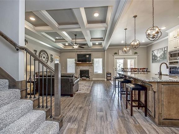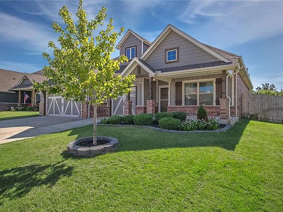 The Timbercrest community offers some of the best neighborhood amenities in Edmond. Spend your time at the pool with clubhouse, playground, basketball courts, soccer fields, 1.5 miles of trails and gated dog park for your furry friends. The home was built in 2020 and features 4 bedrooms and 3 baths. The spacious living is light and bright with a stack stone fireplace and is open to the kitchen. The kitchen boasts double ovens, large island with decorative lighting, stainless steel appliances, granite and breakfast area. The home has 2 bedrooms with great closet space, and the primary bedroom offers ambient lighting. Get ready to enjoy the beautiful primary bath with double vanities, 2 separate closets, and huge shower with corner tub. Additional features are upstairs flex room, 3 car garage, outdoor covered living w/ fireplace, sprinkler system, Rinnai tankless water heater, whole home air purification, R-44 insulation and solarboards, storm shelter, great location and Edmond schools.