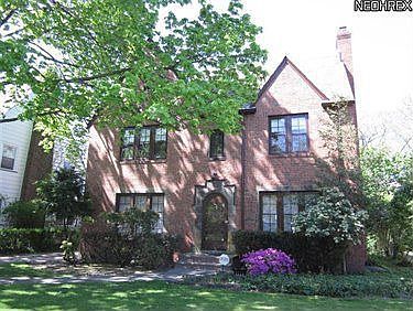 Pretty brick colonial on landscaped lot. Spacious living room with fireplace and refinished hardwood floors. Formal dining room with large windows and hardwood floors. Retro kitchen with newer stainless steel fridge. Breakfast nook has additional storage and countertops. Second floor has 3 bedrooms all with hardwood floors. Master bedroom has walk-in closet. There is a private master bathroom as well. The third floor has a suite - bedroom and bath with a claw foot tub! There is a club room in the lower level with a fireplace and daylight windows. A large screen porch overlooks the back yard. Updates include: energy efficient furnace and central air (2010); Glass block windows, electrical panel and tear off garage roof (2012). Walk to the Shaker Square Rapid. Close to the Clinic, Case and downtown.
